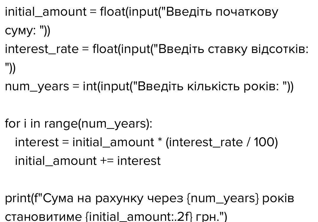 Людина поклала в банк певну суму грошей. Щорічно банк додає до вкладу заздалегідь визначений відсоток від суми, що зберігається на рахунку на кінець поточного року. Побудуйте математичну модель і складіть проєкт для визначення, на скільки зросте сума на рахунку через за n років. Запишіть у зошит набори вхідних даних, для яких ви тестували проєкт . Lazarus(Команда InputBox и компонент Memo)