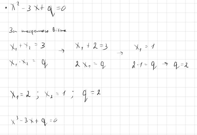 один із клренів квадратного рівняння дорівню є 2. знайдіть коефіцієнт q та другий корінь рівняння:x³-3x+q=0