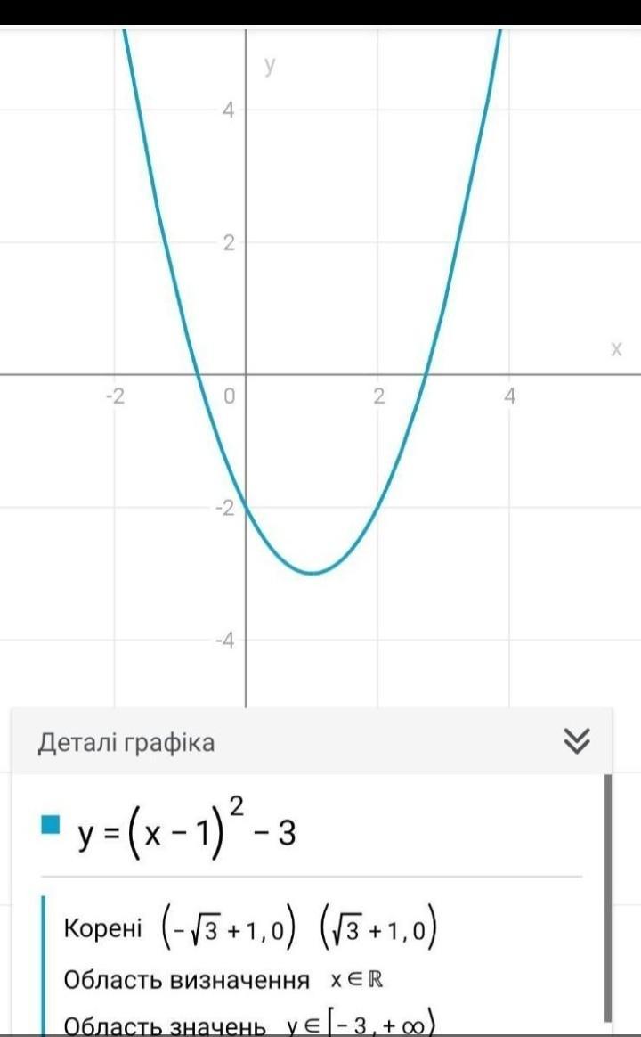 Побудуйте графік функції: y=(x-1)²-3. Знайдіть множину значень цієї функції.