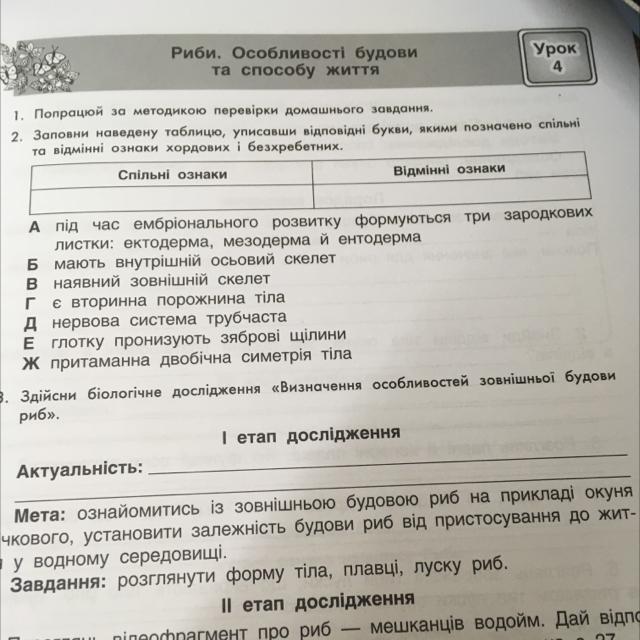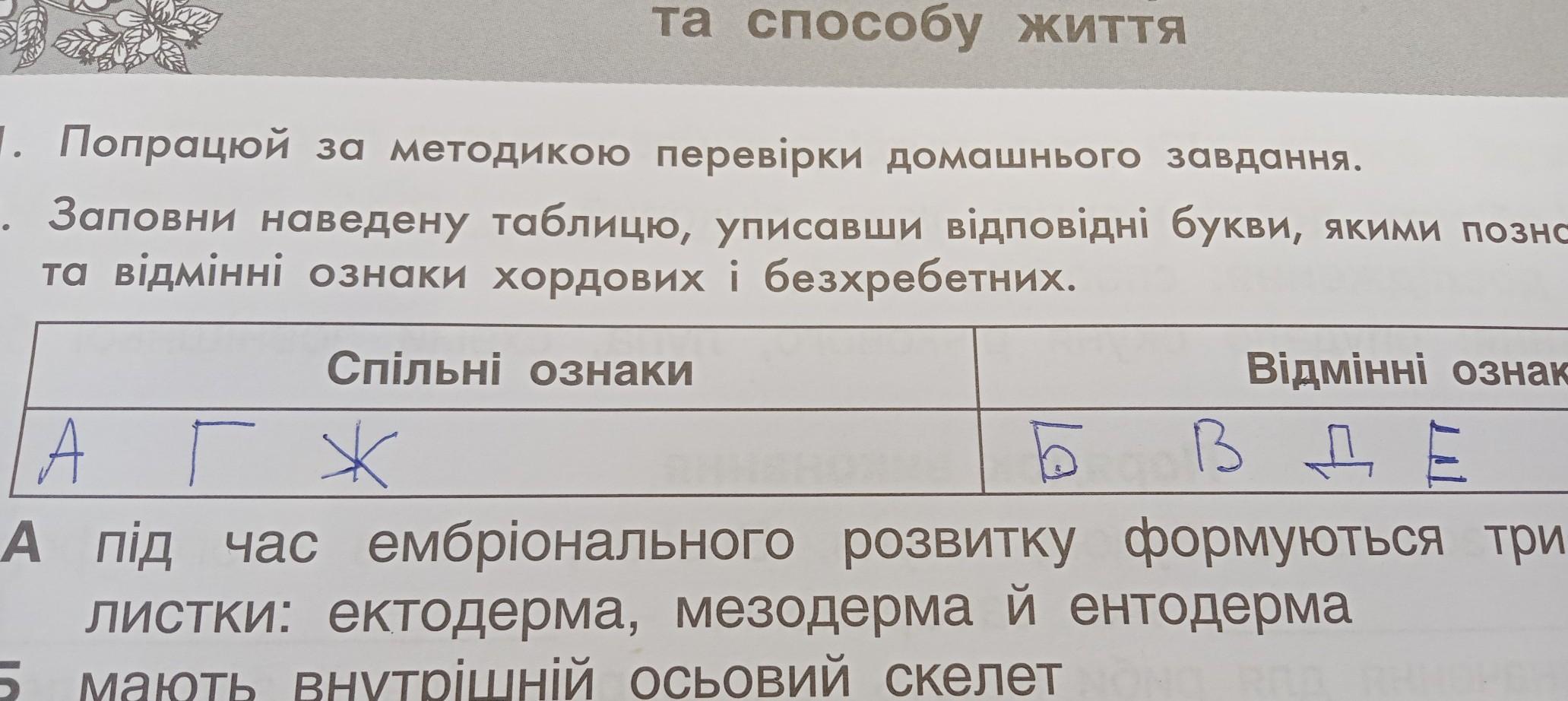 2. Заповни наведену таблицю, уписавши відповідні букви, якими позначено спільні