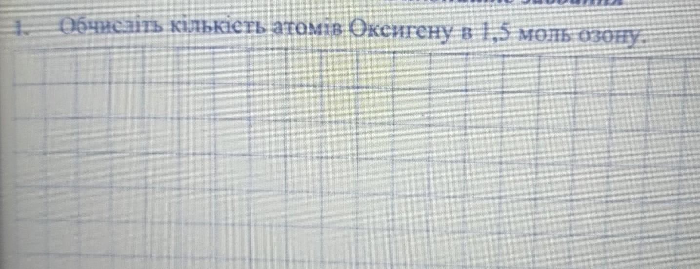 Кожна молекула озону містить 3 атоми кисню, тому кількість атомів Оксигену в 1,5 моль озону:
