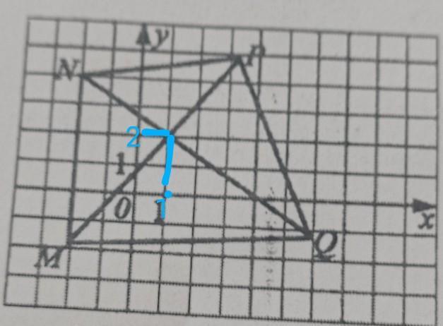 а) Укажите координаты точки пересечения диагоналей четырёхугольника, изображенного на рисунке: