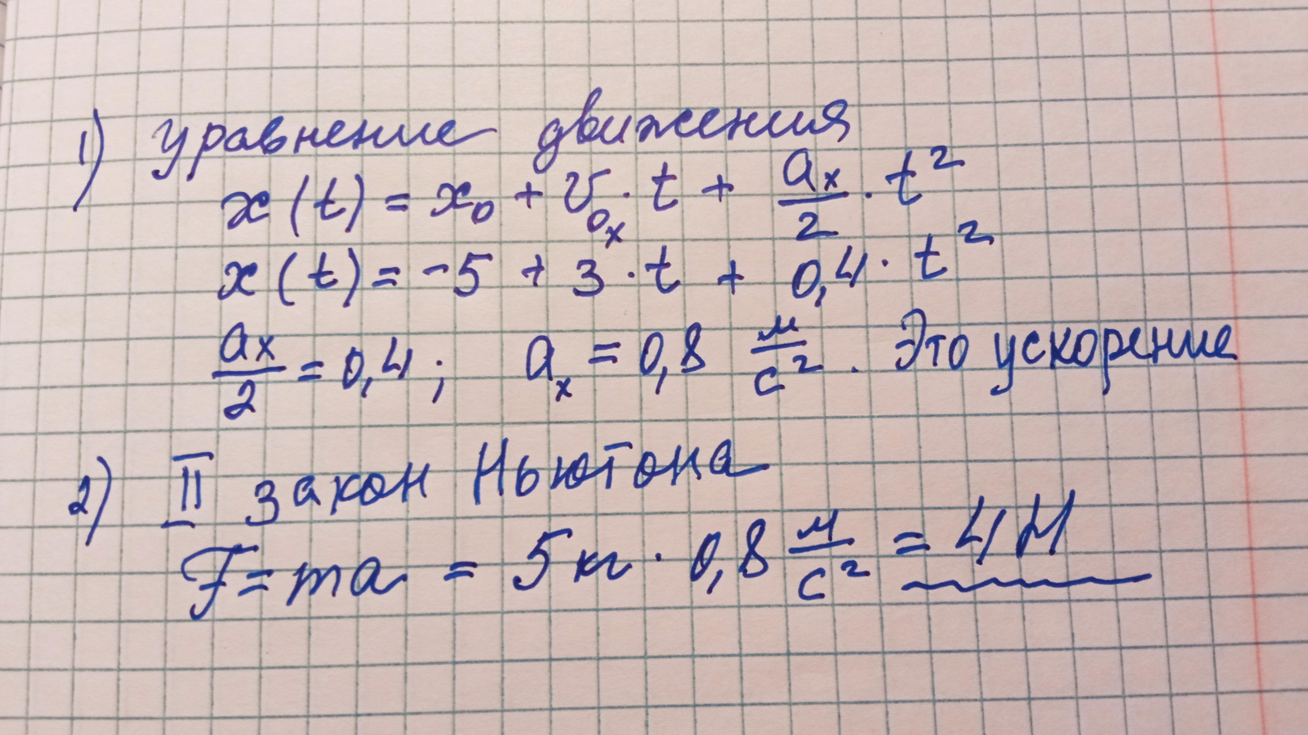 Тіло, маса якого 5 кг, рухається вздовж осі ОХ, так, що його координата в CI змінюється за законом x=-5+3t+0,4t. Визначте силу, що діє на тіло