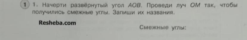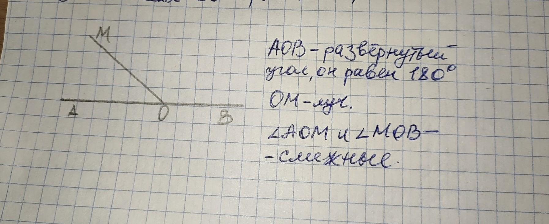 Начерти развернутый угол AOB .Проведи луч ОМ так,чтобы получились смежные углы,Запиши их названия