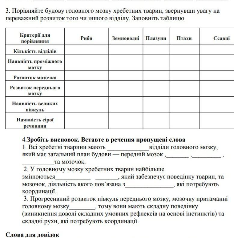Слабо розвинений Середній рівень розвитку Добре розвинений, з'являється кора півкуль Збільшений Найбільший, має велику площу кори півкуль за рахунок борозн