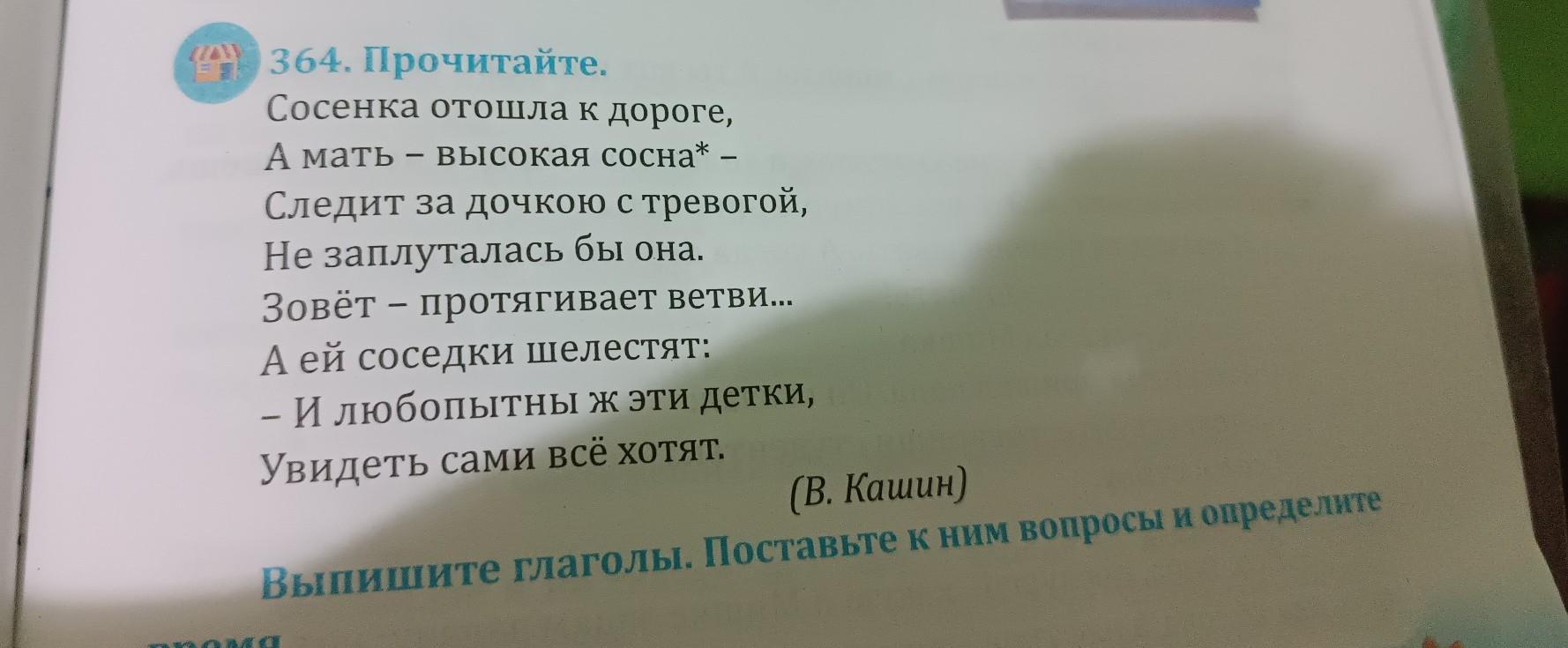364. Прочитайте. А мать Сосенка отошла к дороге, высокая сосна* - Следит за дочкою с тревогой, Не заплуталась бы она. Зовёт - протягивает ветви... А ей соседки шелестят: И любопытны ж эти детки, Увидеть сами всё хотят. - - (В. Кашин) Выпишите глаголы. Поставьте к ним вопросы и определите время. Срочно помогите пожалуйста даю 80 баллов