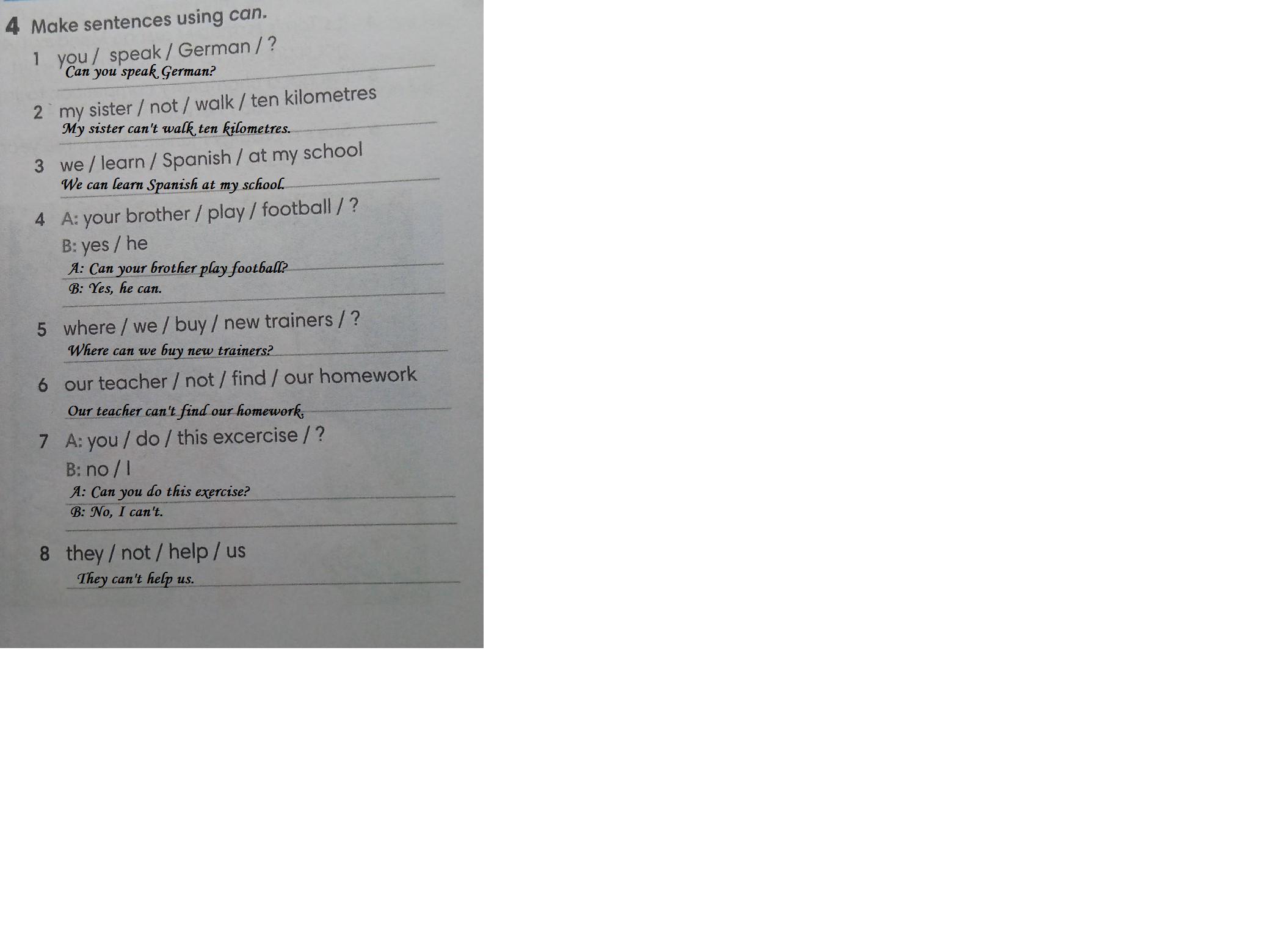 7 A: you/do/ this excercise/?