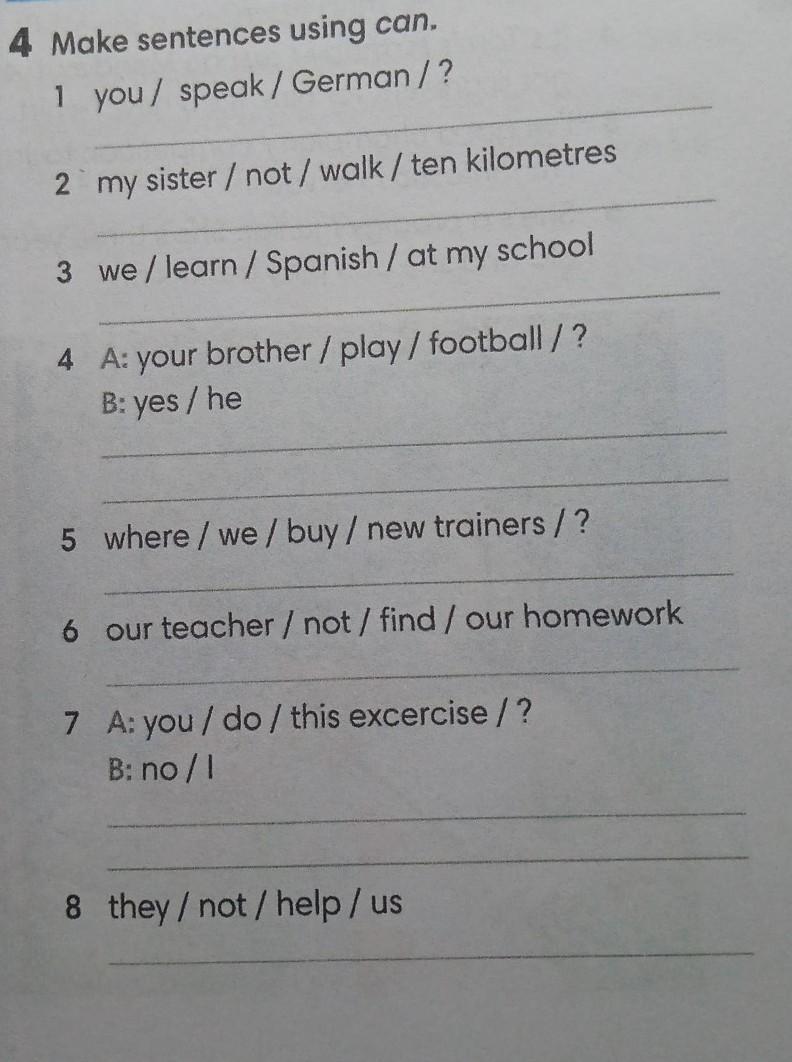 4 Make sentences using can.