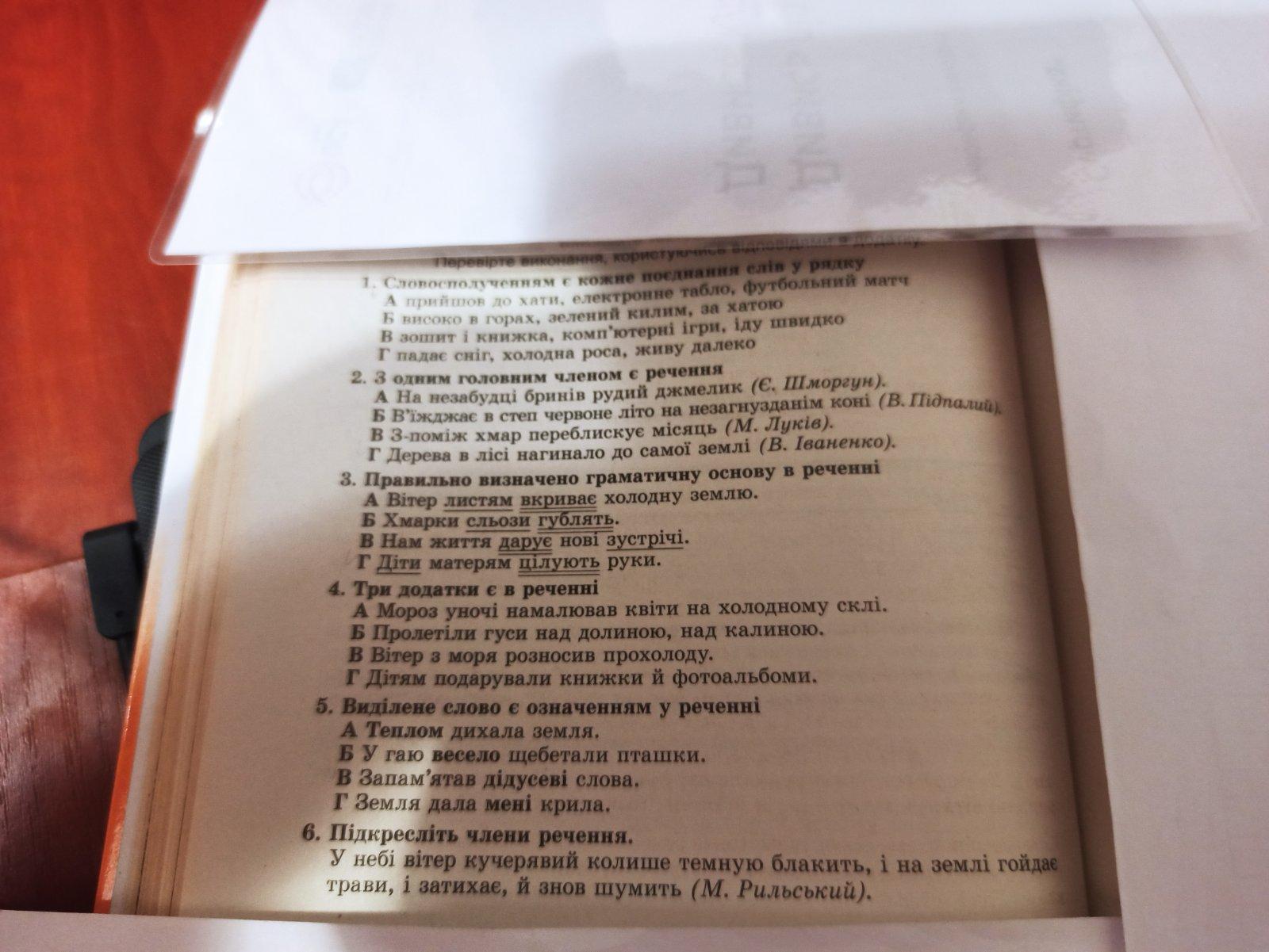 6. У небі (обставина),вітер (підмет) кучерявій (означення)колише (присудок) темную (означення) блакить (підмет),і на землі (додаток)гойдає (присудок) трави (підмет),і затихає (присудок),й знов (обставина) шумить(присудок).