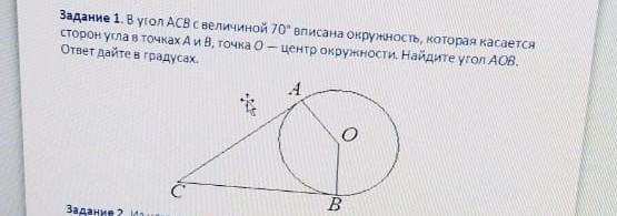 Сума всех углов в четыре угольнике 360°. <CAO=<CBO=90°, <ACB=70