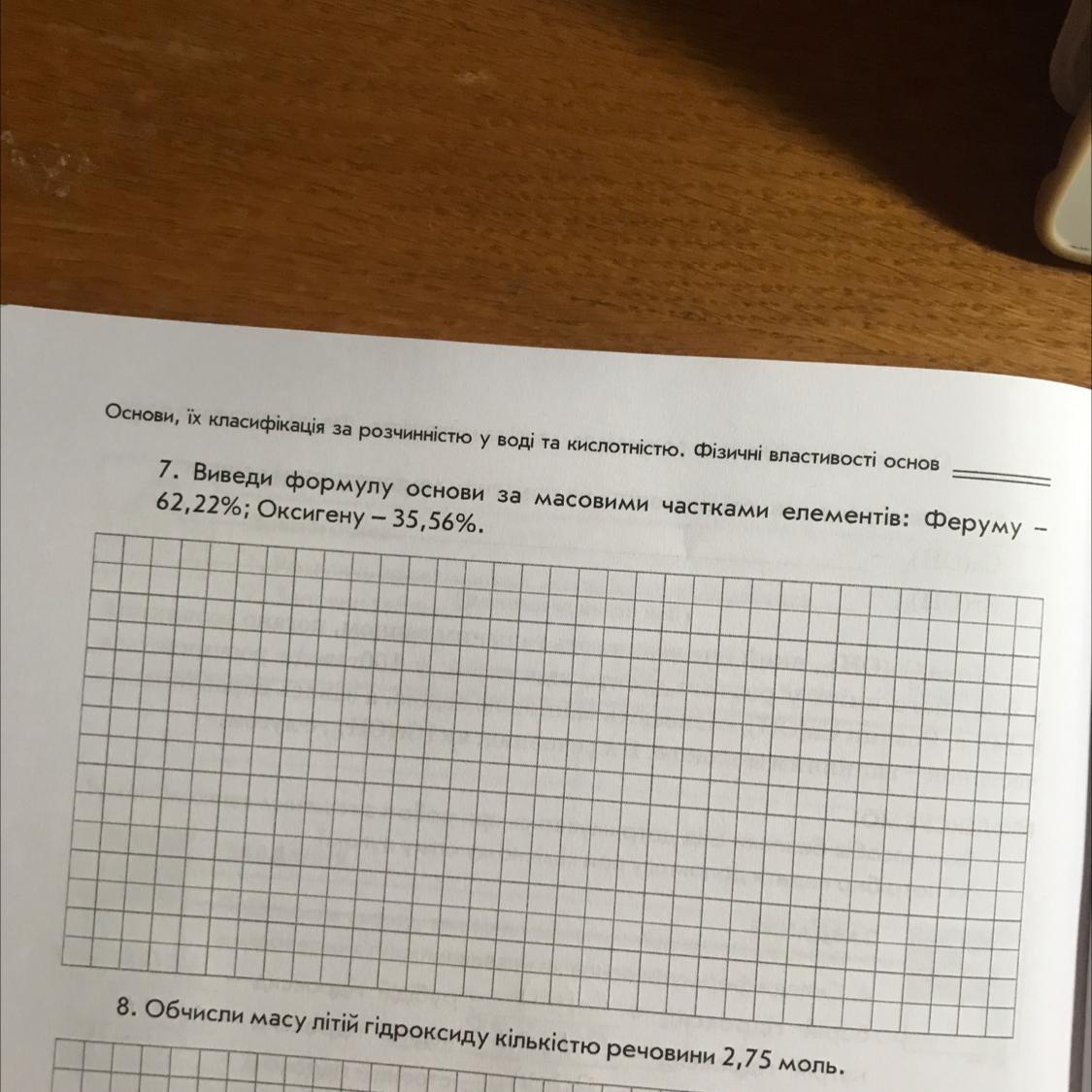 7. Виведи формулу основи за масовими частками елементів: Феруму