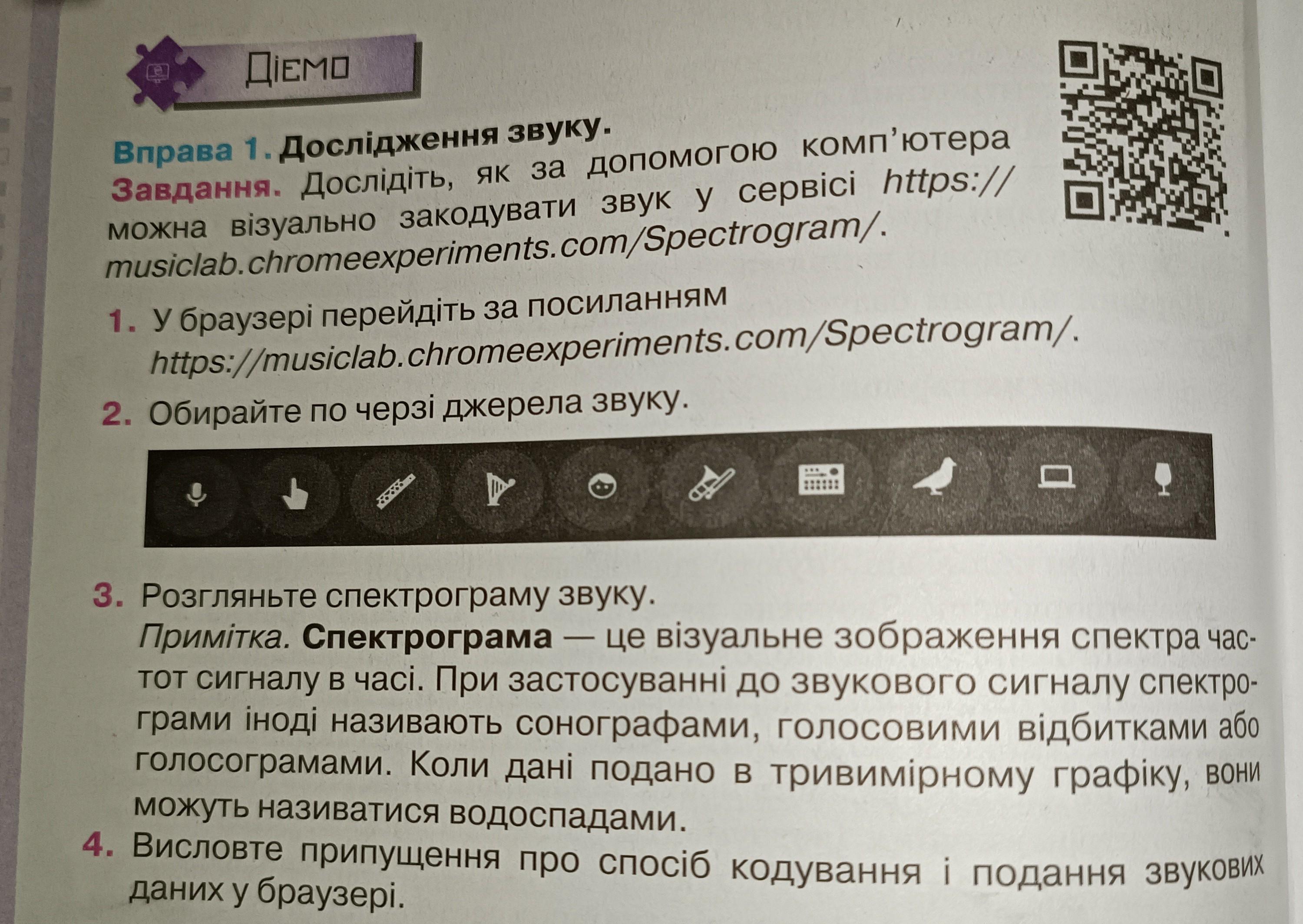 4. Висловте припущення про спосіб кодування і подання звукових даних у браузері.