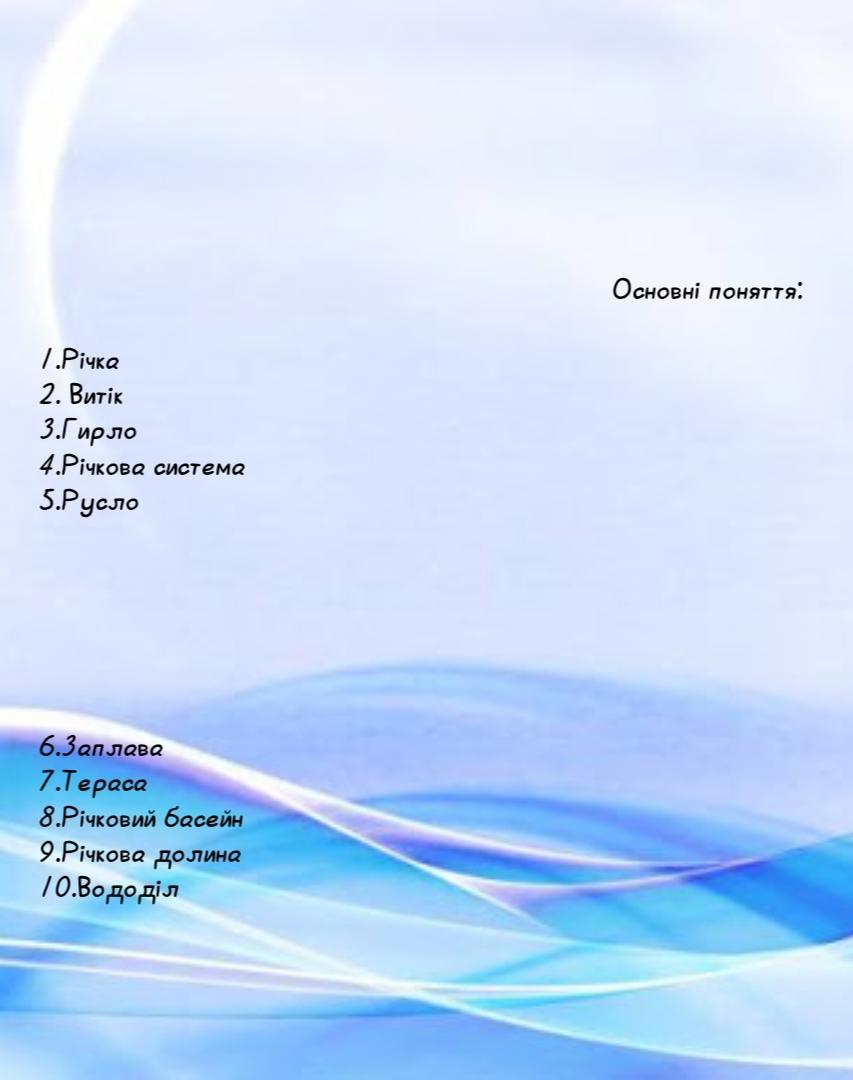 Річка - це природний потік (водотік), який витікає з джерела, озера чи болота, має сформоване річище і тече під дією сили тяжіння