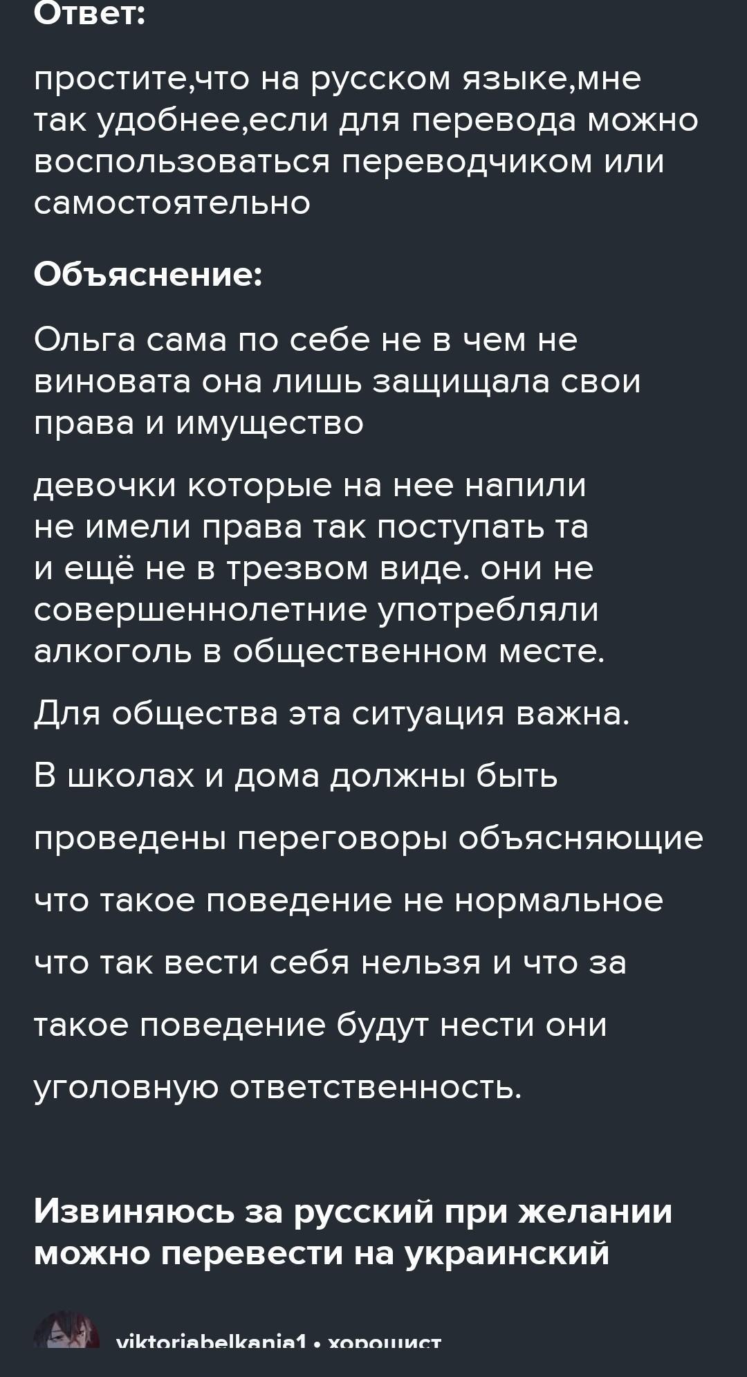 Під час слідства з'ясувалося, що на місці ситуації напередодні бійки, 1 квітня, усі дівчата були напідпитку. На по- двір'ї вони розпивали спиртні напої та чіплялися до перехожих. У мережі на цю новину з'явився відгук: усі ці дії це наслідки алкоголю, і їхнє продовження відбулося 2-го числа». Олеся навчається на педагога молодших класів на 1-му курсі. Інша активна учасниця, Катерина, виховується в не- повній сім'ї і має лише матірПравоохоронні органи розслідують кримінальне провадження за частиною 2 статті 296 Кримінального Кодексу України (хуліганство, вчинене групою осіб). Підлітки, які калічили школярку, можуть потрапити до виправної колонії на строк до чотирьох років. Поліція вста новила й свідків ситуації, підлітків-глядачів.
