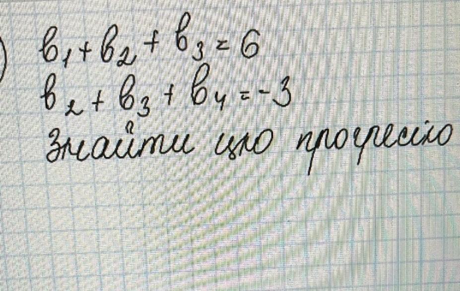 \displaystyle\bf\\-\left \{ {{b_{1} + b_{2} + b_{3} =6} \atop {b_{2} + b_{} + b_{4} =-3}} \right. \\-----------\\b_{1} + b_{2} + b_{3} -b_{2} - b_{3} - b_{4} =6-(-3)\\\\b_{1} -b_{4} =9\\\\b_{1} -b_{1} \cdot q^{3} =9\\\\\boxed{b_{1} \cdot(1-q^{3} )=9}\\\\\\S_{3} =b_{1} + b_{2} + b_{3} =6\\\\S_{3} =6\\\\S_{3}=\frac{b_{1} \cdot(1-q^{3} )}{1-q}  \\\\\\6=\frac{9}{1-q} \\\\9=6\cdot(1-q)\\\\9=6-6q\\\\6q=-3\\\\q=-0,5