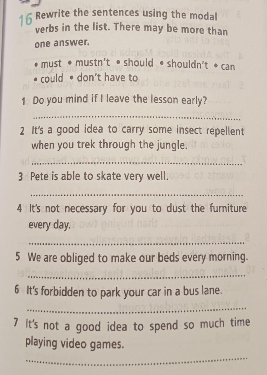 You shouldn't dust the furniture every day. 5. We must make our beds every morning.