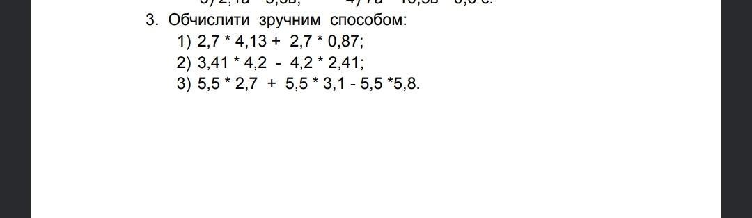 3) 5,5*2,7 + 5,5*3,1 - 5,5*5,8 = 5,5(2,7+3,1-5,8) = 45,5*0 = 0.