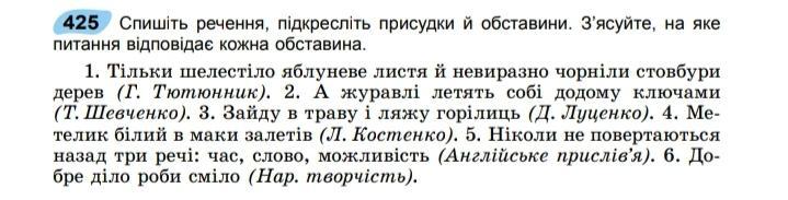 Тільки шелестіло яблуневе листя й невиразно чорнілив стовбури дерев - присудок: шелестіло і чорніли; обставини: яблуневе листя (як?), невиразно (як?), стовбури дерев (як?).