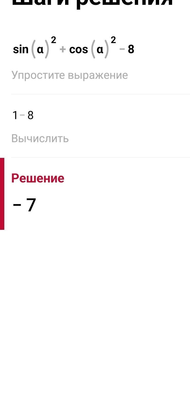 sin²a+cos²a=1 основное тригонометрическое тождество, тогда 1-8=-7