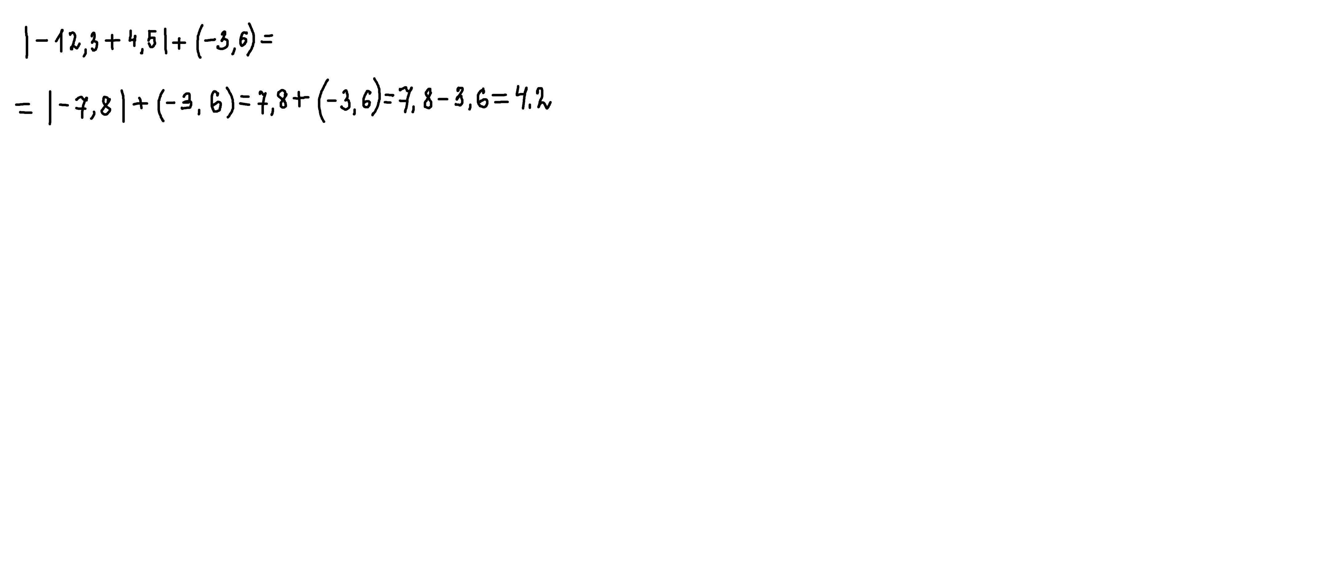 |-12,3+4,5|+(-3,6)=|-7,8|-3,6=4,2