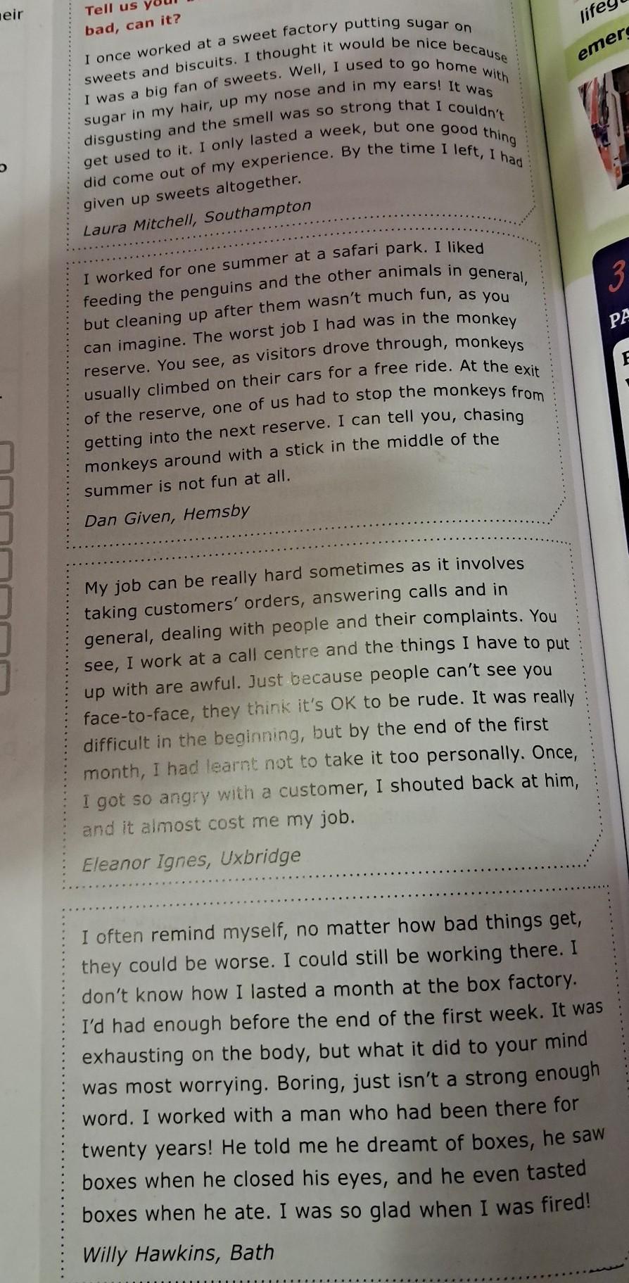 Read again and write L for Laura, D for Dan, E for Eleanor or W for Willy.