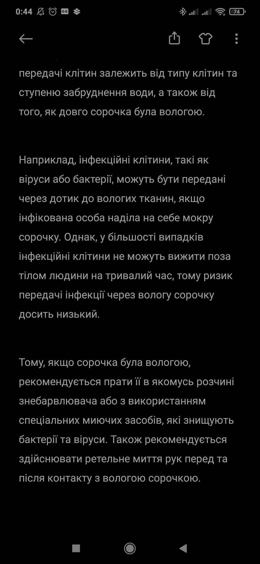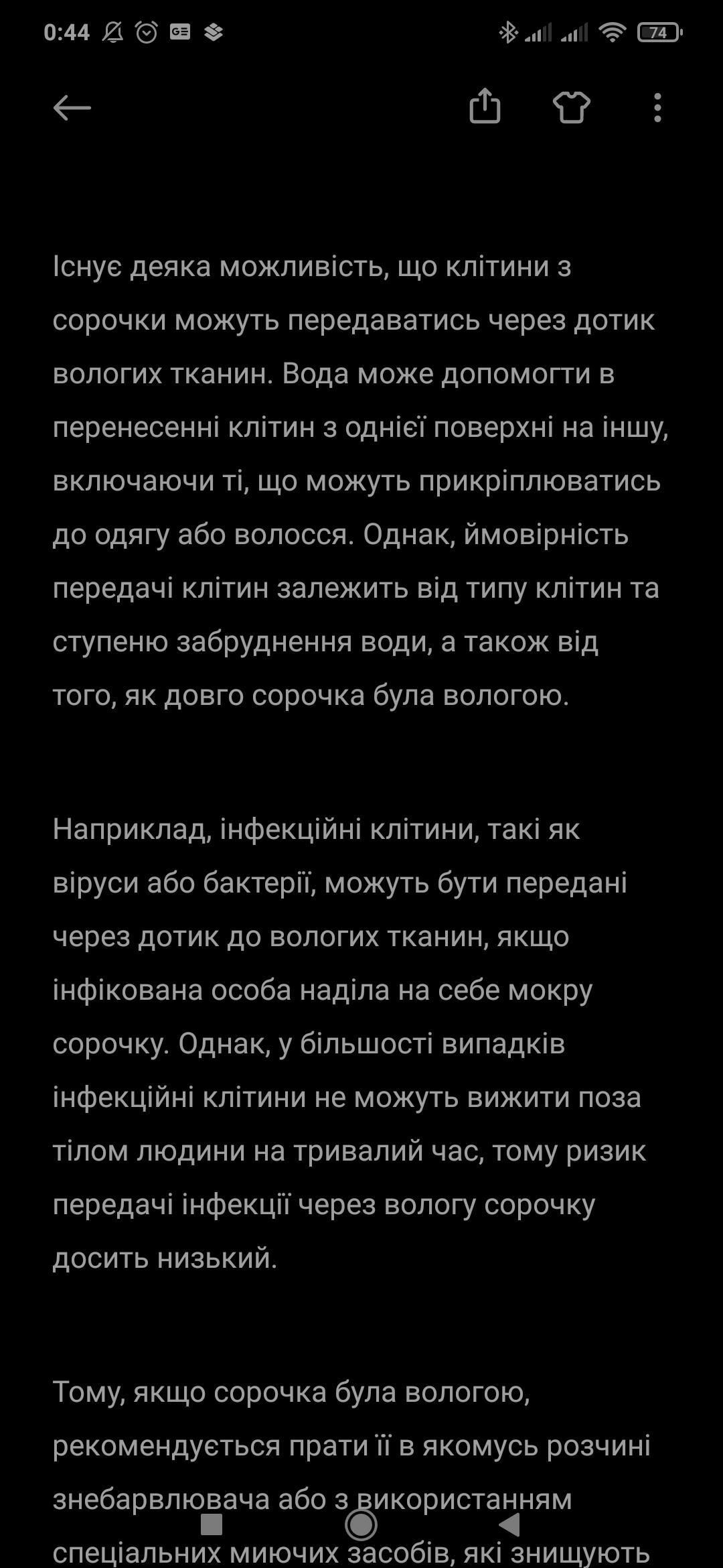 Якщо намокла сорочка в яку одягнута людина, чи можуть будь-які клітини з сорочки передатись по цій воді четез дотик , які б не могли передатись якщо б не вода ?