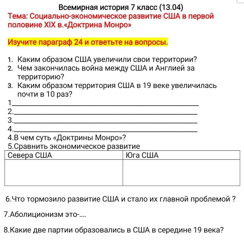 4.. 4.В чем суть «Доктрины Монро»? 5.Сравнить экономическое развитие Севера США Юга США