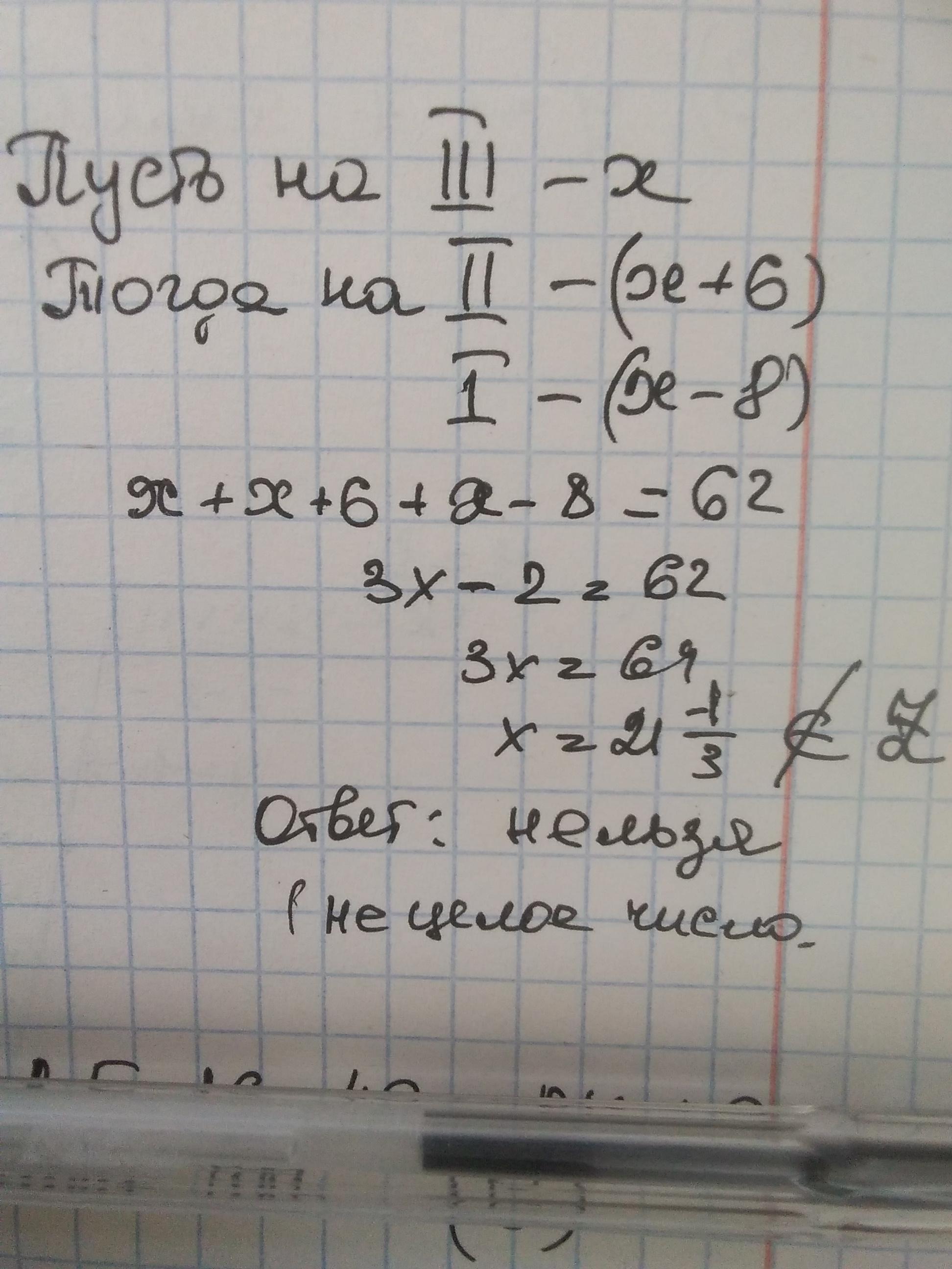 Чи можна 62 підручника розмістити на трьох полицях так ,щоб на третій було на 6 менше ніж на другій, і на 8 більше ніж на першій ?