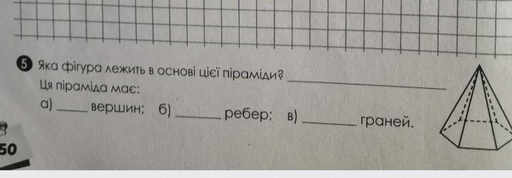 Фігура в ньому лежить шестикутник, а має а) 6 вершин, б) 6 ребер, в) 6 граней!