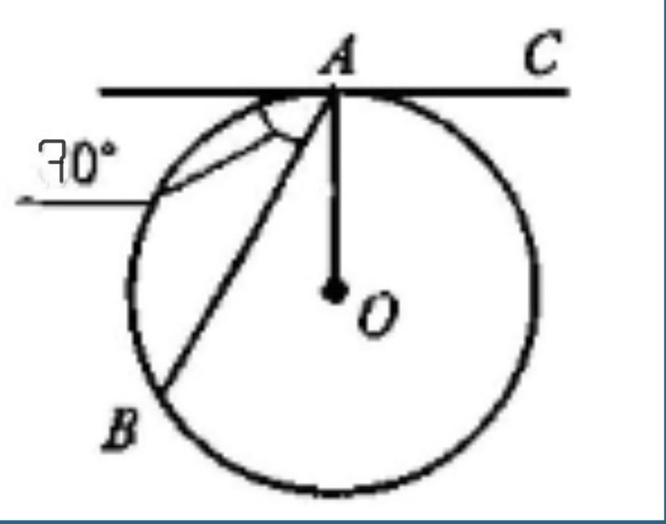 Если я правильно понял рисунок, отрезок ВА образует с прямой АС смежные углы, из которых один равен 70° по условию. По теореме о смежных углах, их сумма равна 180°.