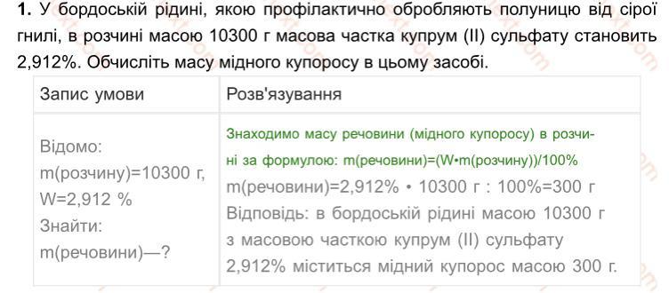 Трiвень 1. У бордоській рідині, якою профілак- тично обробляють полуницю від сірої гнилі, в розчині масою 10 300 г масова частка купрум(II) сульфату становить 2,912%. Обчисліть масу мідного купо- росу в цьому засобі. Відомо: