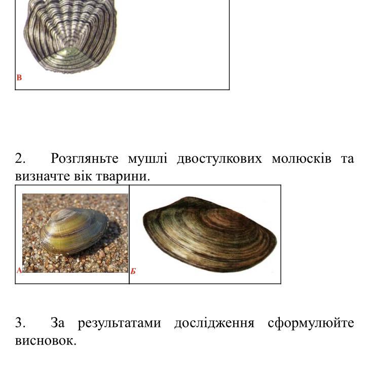 На першій світлині мушля молодша, вона перебуває на берегах водойм її вік приблизно 1-2 роки.