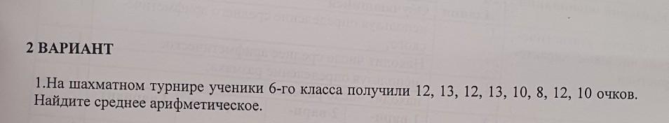 2 ВАРИАНТ 1.На шахматном турнире ученики 6-го класса получили 12, 13, 12, 13, 10, 8, 12, 10 очков. Найдите среднее арифметическое.
