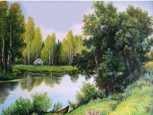 На цій картинці я бачу озеро, красиві зелені дерева, траву та квіти різних квітів, а саме ці квіти рожевого та жовтого кольору.