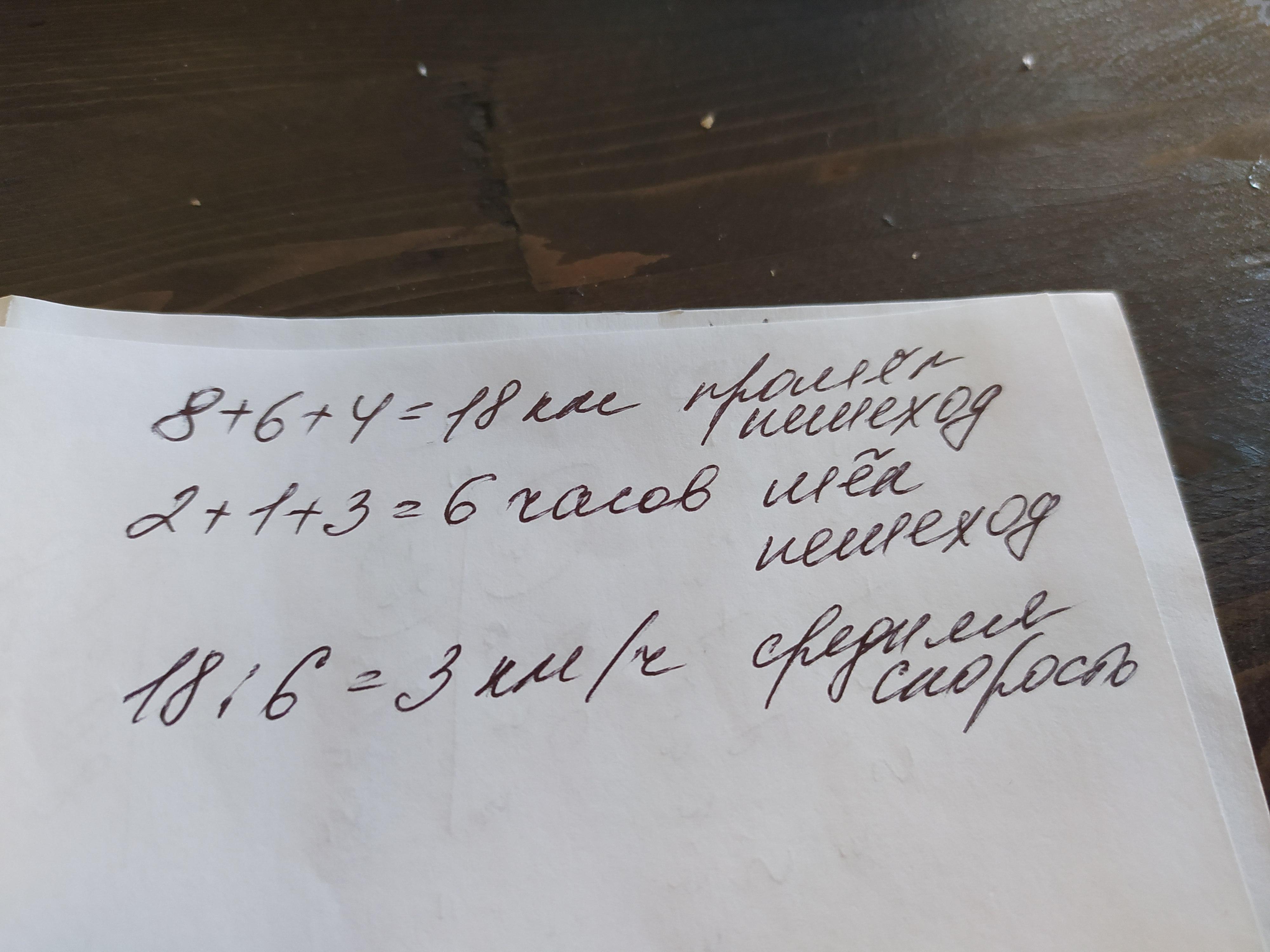 Ответ: средняя скорость движения пешехода на всем пути составляет 3 км/ч.