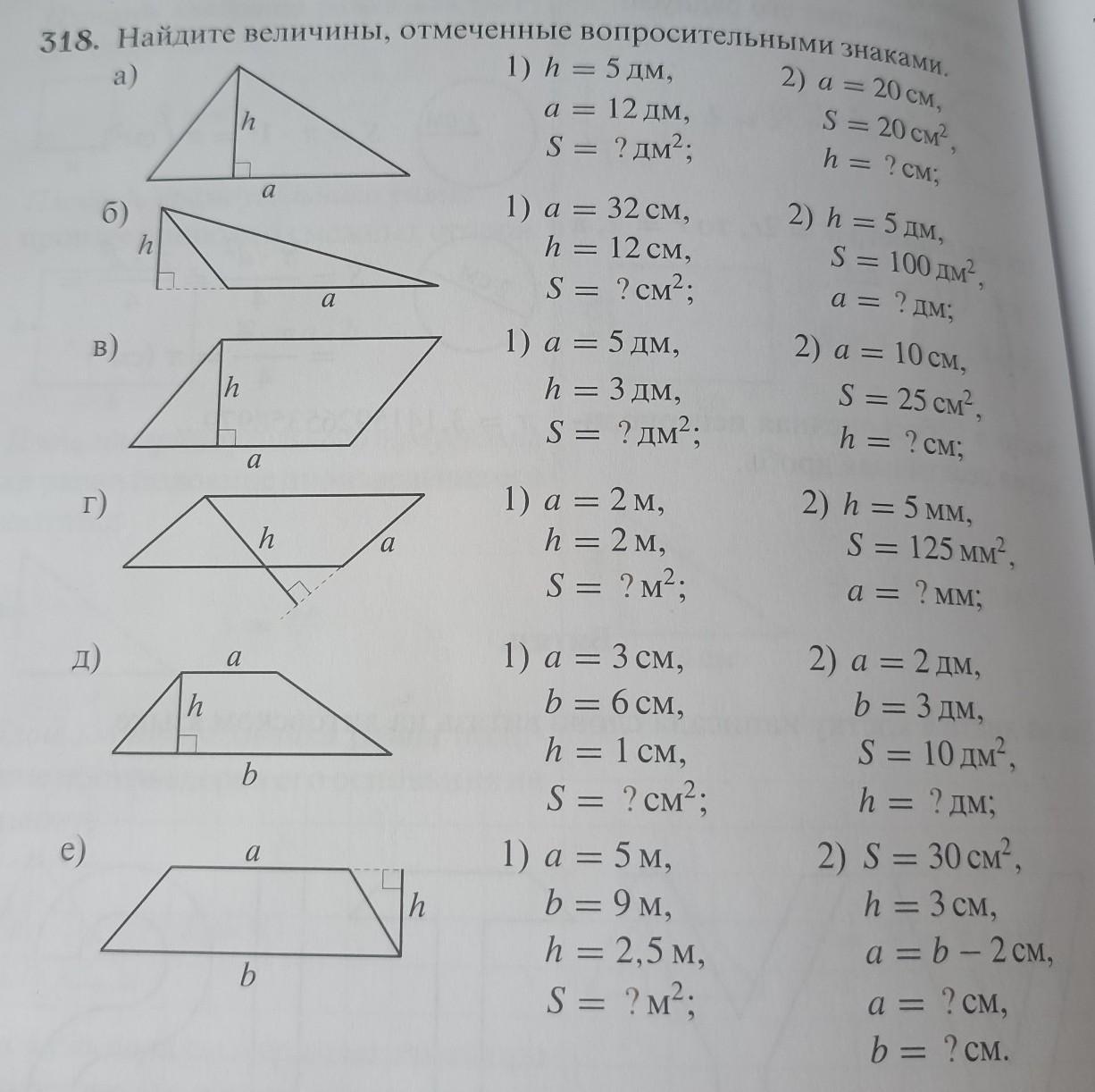 1) S = 1/2 ah = 1/2 × 32 × 12 = 32 × 6 = 192 см²