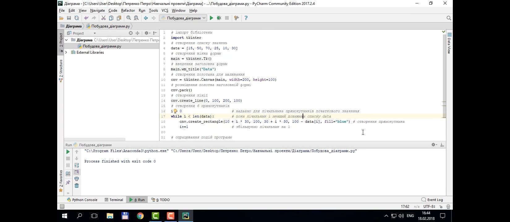 Вправа 2. Стовпчаста діаграма. Завдання. У середовищі програмування розробіть проєкт, у якому у вікні головної форми буде побудована стовпчаста діаграма, яка демонструє співвідношення мiж числами 70, 50, 30, 25, 15, 10.
