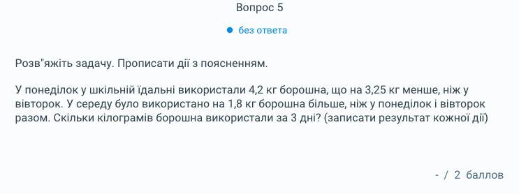 1) 4,2 + 3,25 = 7,45 (кг) - муки использовали во вторник