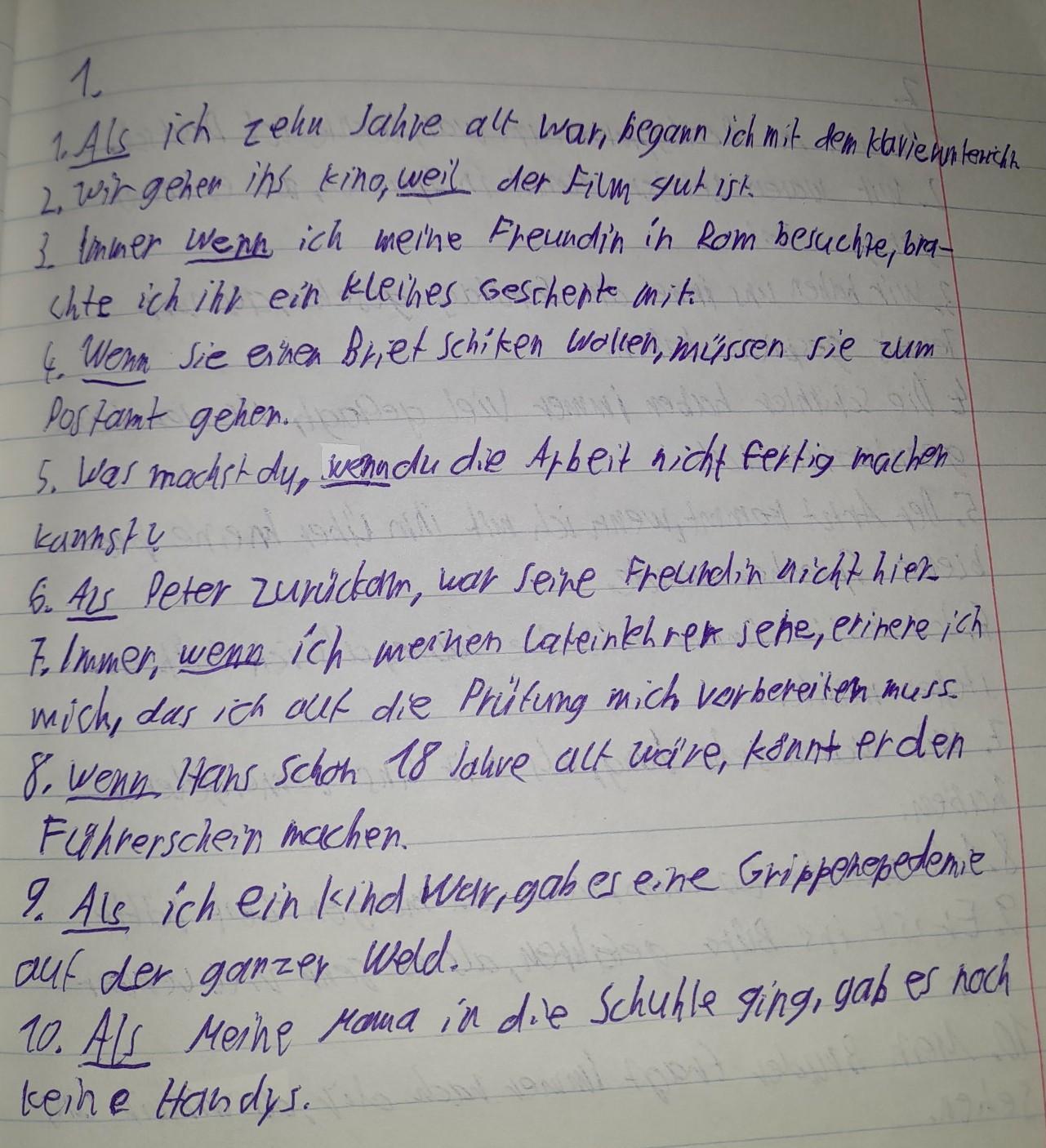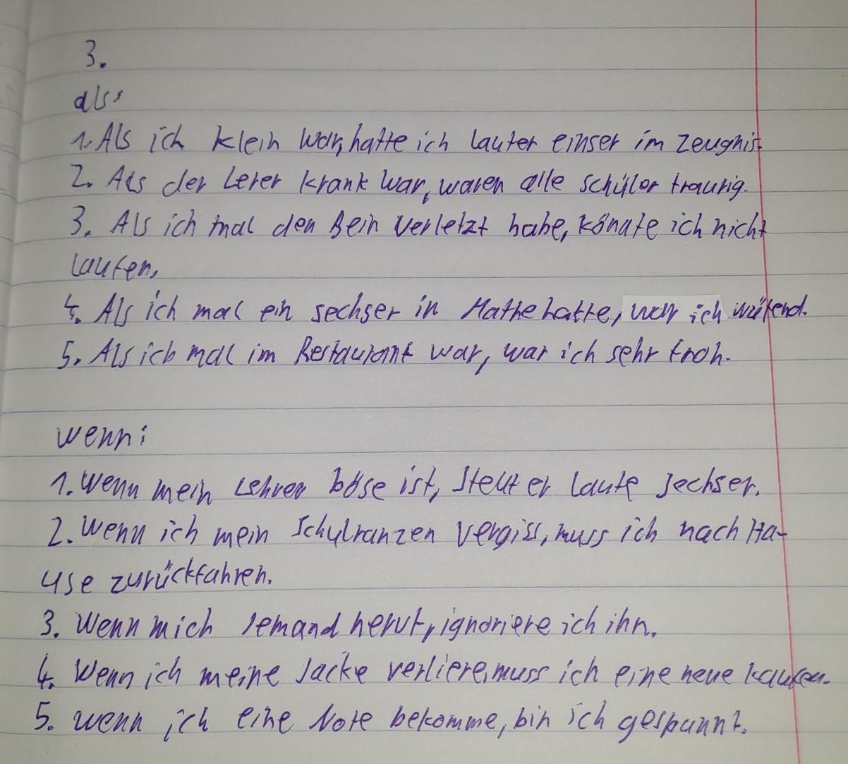 Schreiben Sie 5 Sätze mit als und 5 mit wenn
