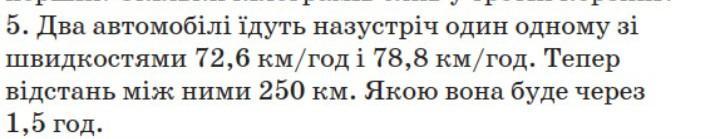 Два автомобиля едут навстречу друг другу со скоростями 72,6 км/ч и 78,8 км/час. Сейчас расстояние между ними 250 км. Какое расстояние будет через 1,5 ч.