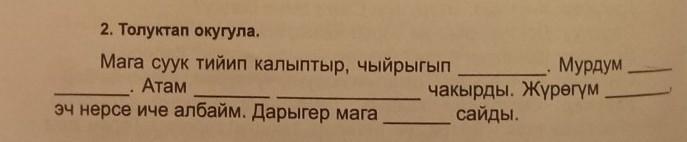 Ответ:калдым. Бутуп жатат. Машина айдоочусун . Бырс. Укол