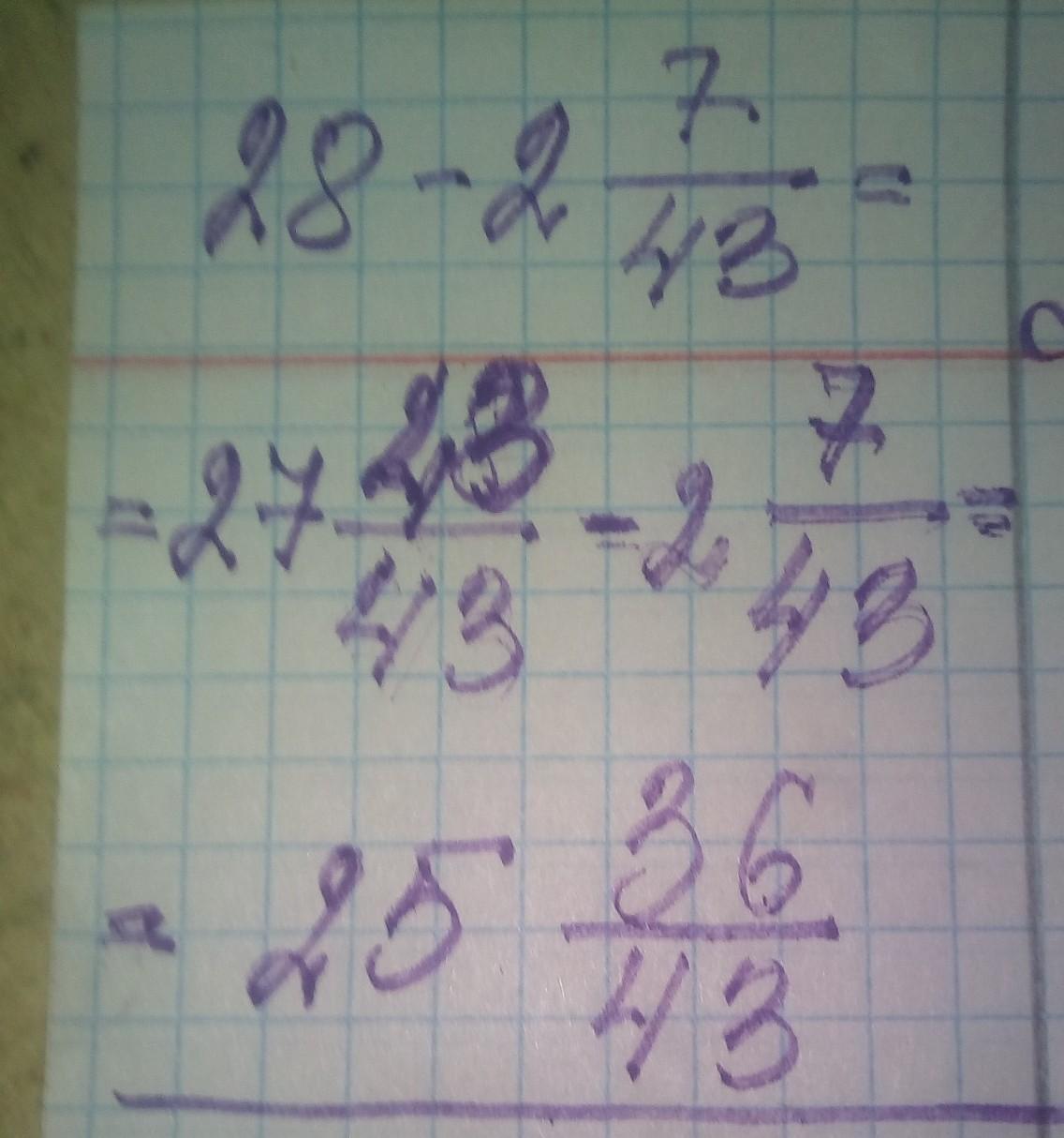 28-2 7/43=27 43/43-2 7/43=(27-2)+(43/43-7/43)=25 36/43