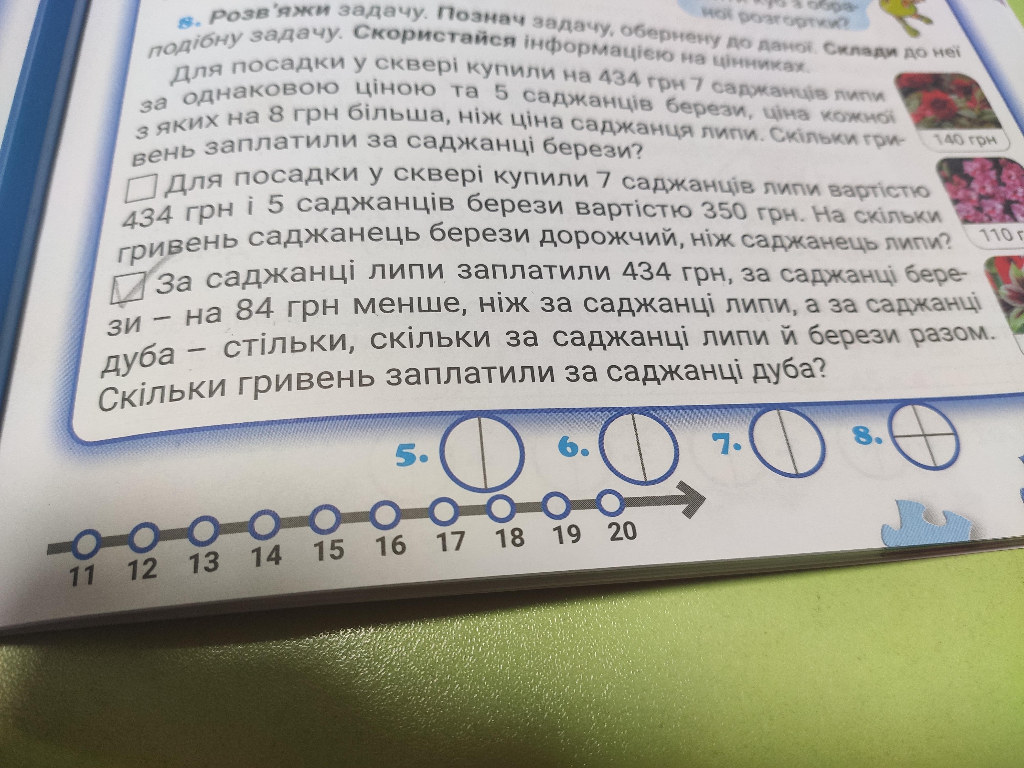 2) 434 + 350 = 784(грн) - саженцы березы и липы