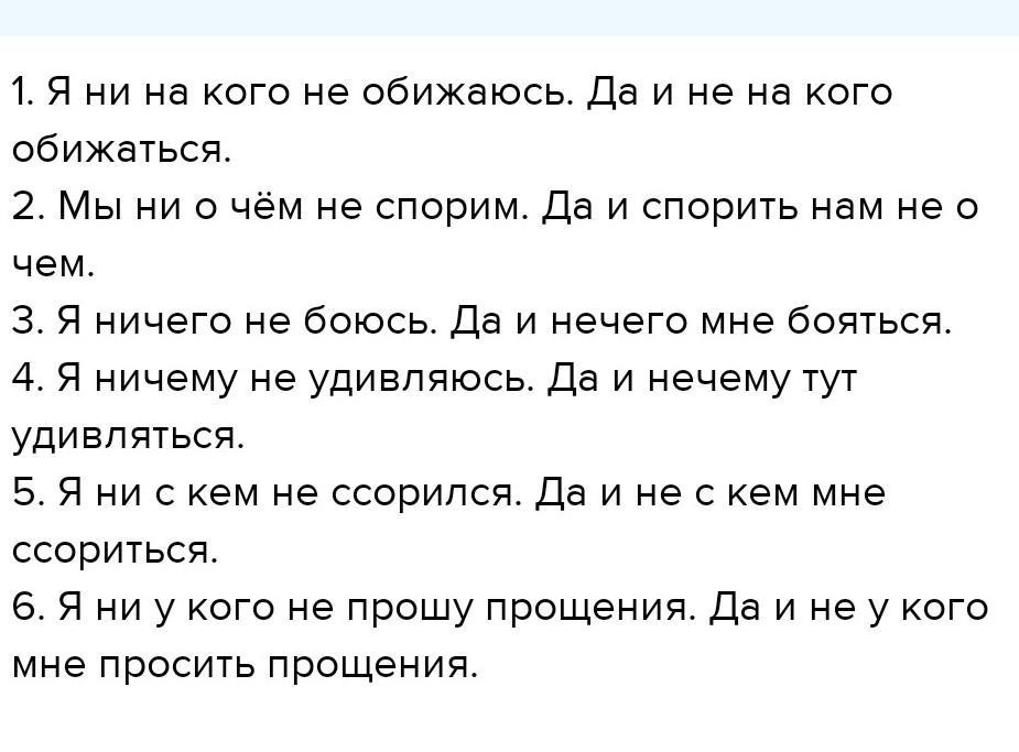 диалог с отрицательными местоимениями только посарайтесь нап сать по больше пж