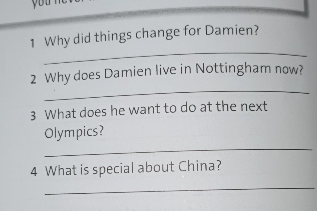 1. Things changed for Damien, because sportting talent is in Damien's family, and he trainers every day.