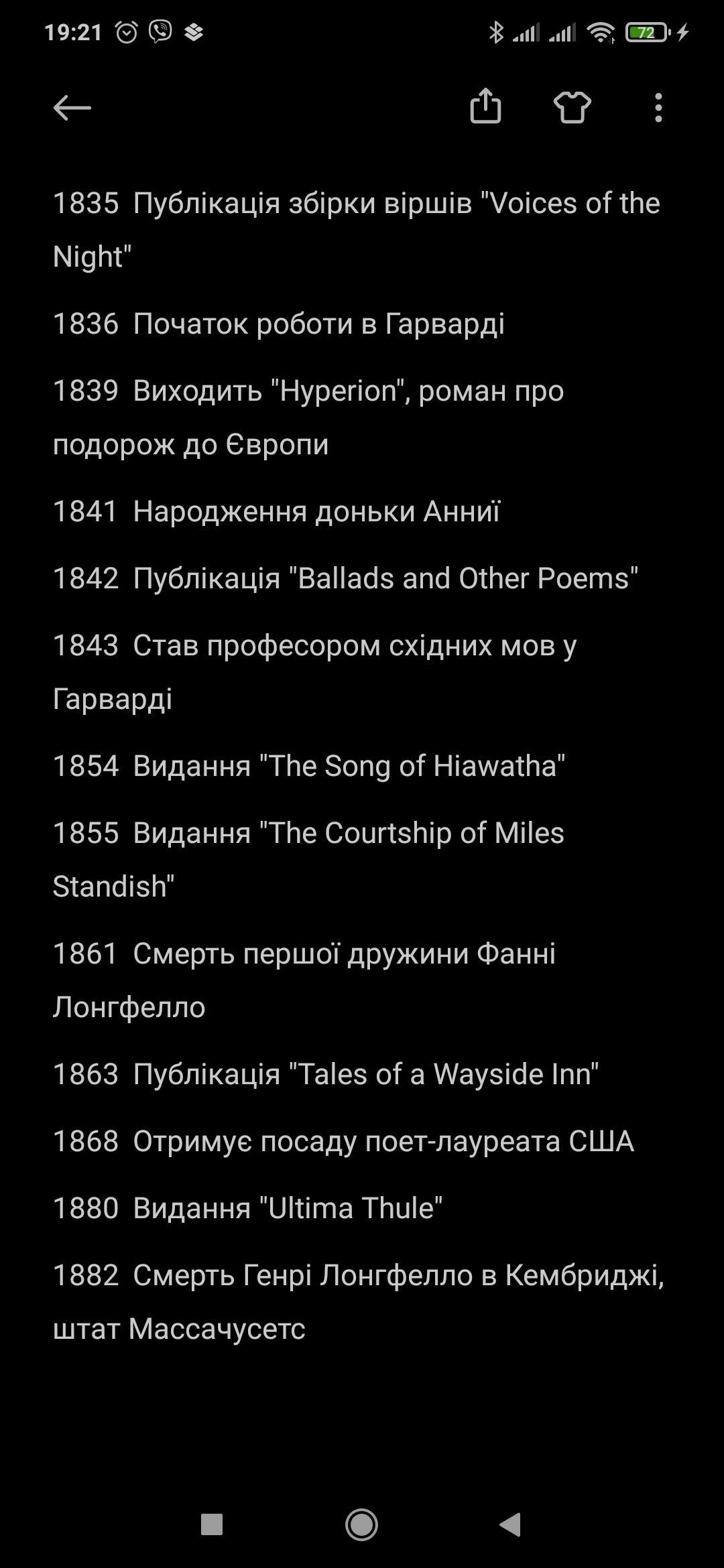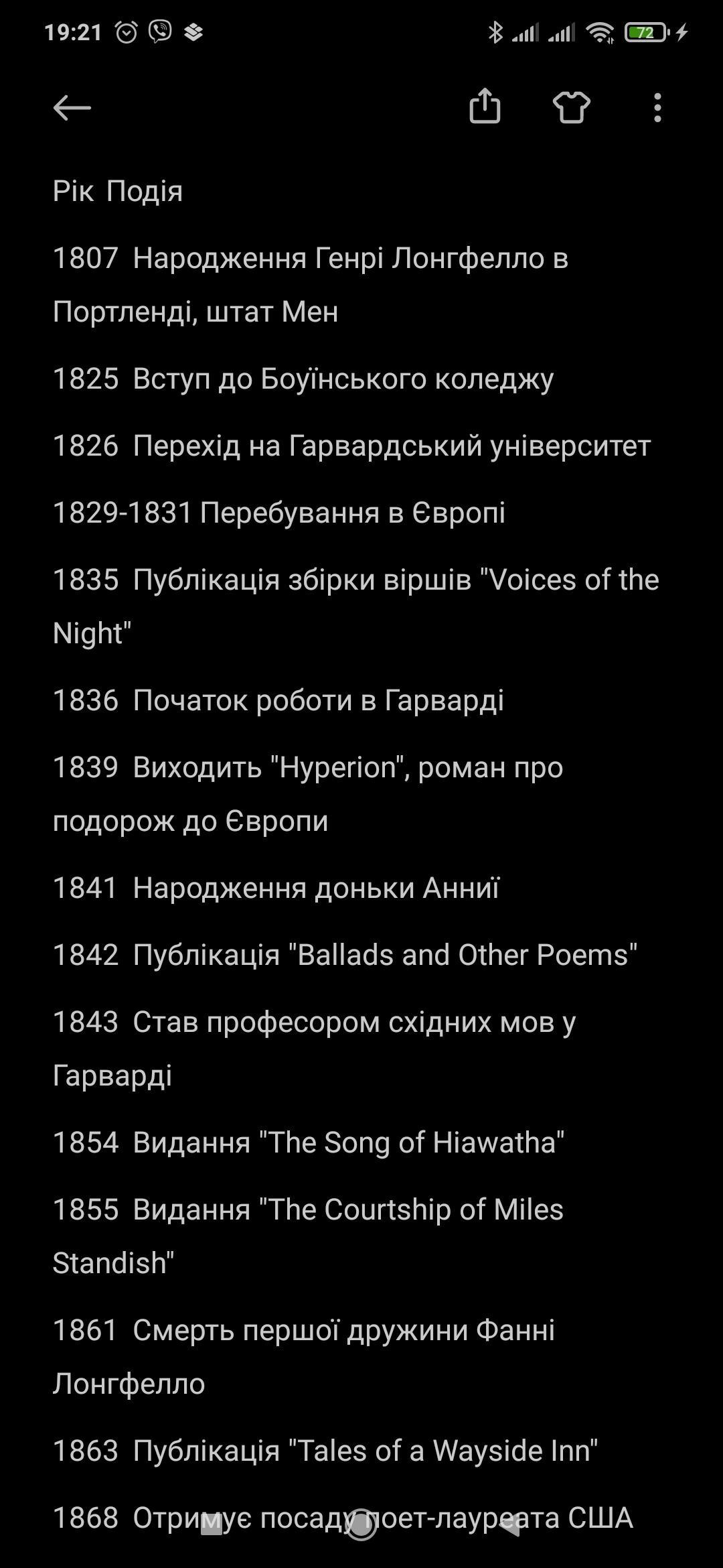 Скласти хронологічну таблицю "Життя і творчість поета Лонгфелло"