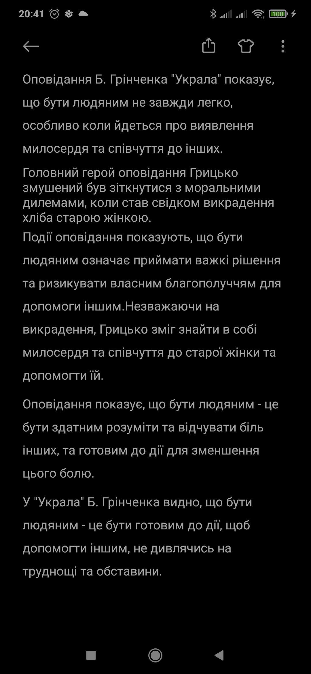 Дайте письмову відповідь на питання: "Чи легко бути людяним? (на основі оповідання Б.Грінченка "Украла" 6-8 речень)