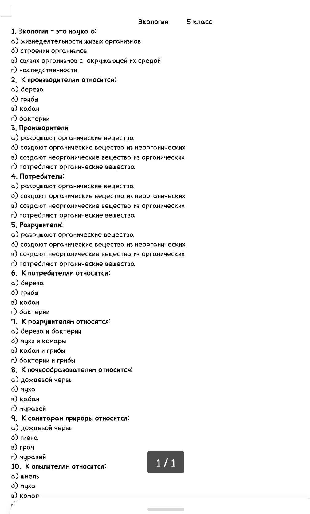 1. в