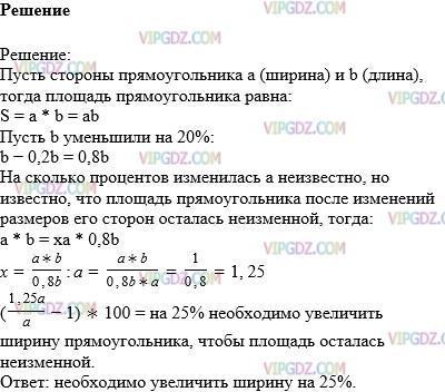 1130. Длина прямоугольника уменьшилась на 20%. На сколько процентов надо увеличить ширину, чтобы площадь прямо- угольника не изменилась?