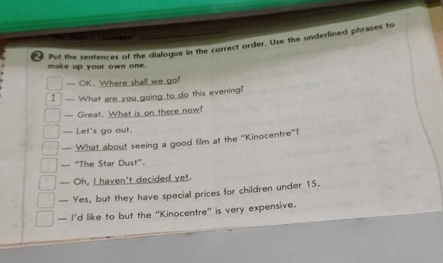 2.Put the sentences of the dialogue in the correct order. Use the underlined phrases to